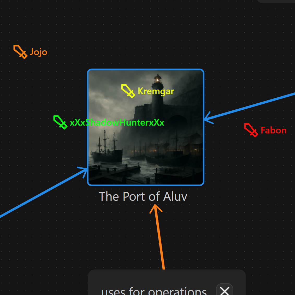 Collaborate with your players to quickly sketch factions, locations, and relationships.